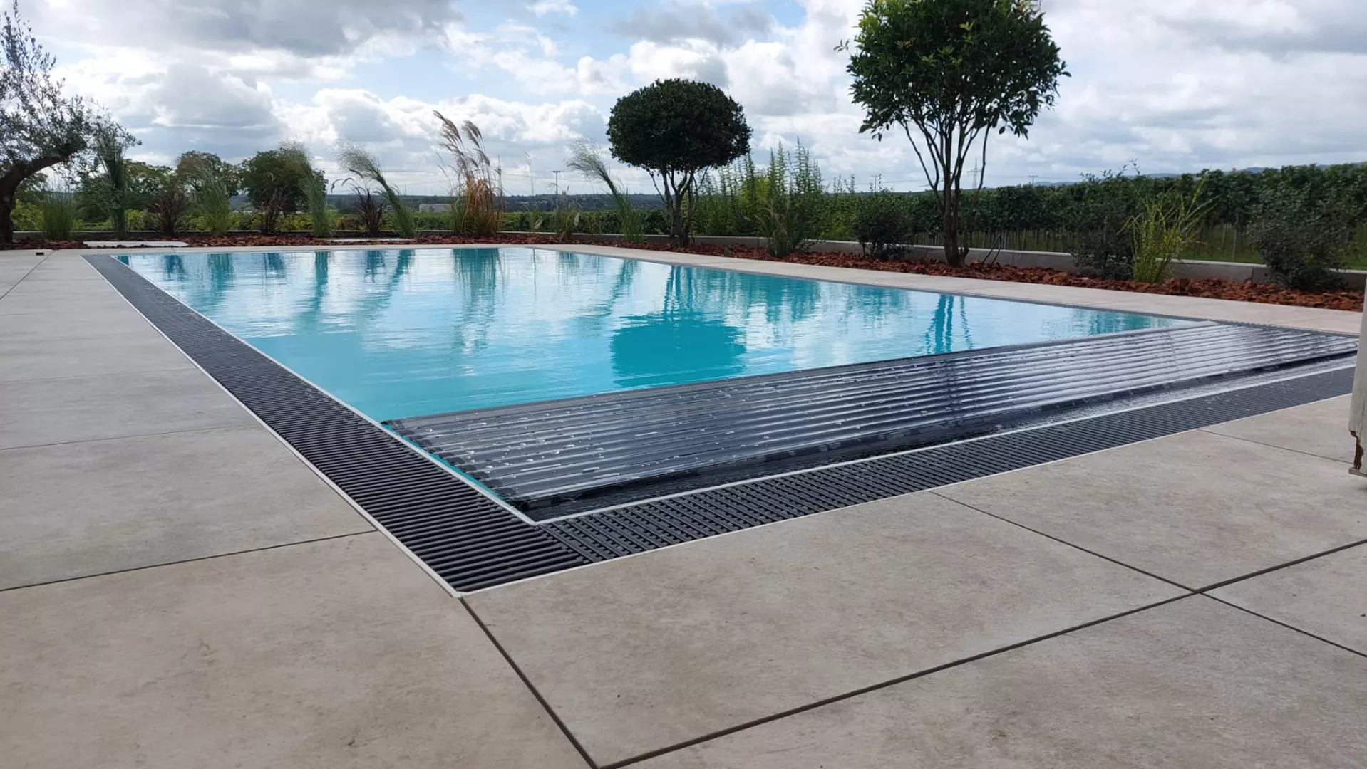 The skimmer is a small device, mounted in the wall of the pool, which collects water from the mirror level. The pump circulates the water through the filter, purifying and reinjecting it into the pool. It is an aesthetically pleasing solution that allows for a timeless pool design.