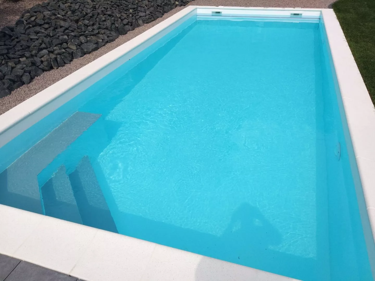 White polypropylene gives the water a very light, delicate shade of blue, which also accentuates the light reflections on the pool's water surface in bright sunlight.